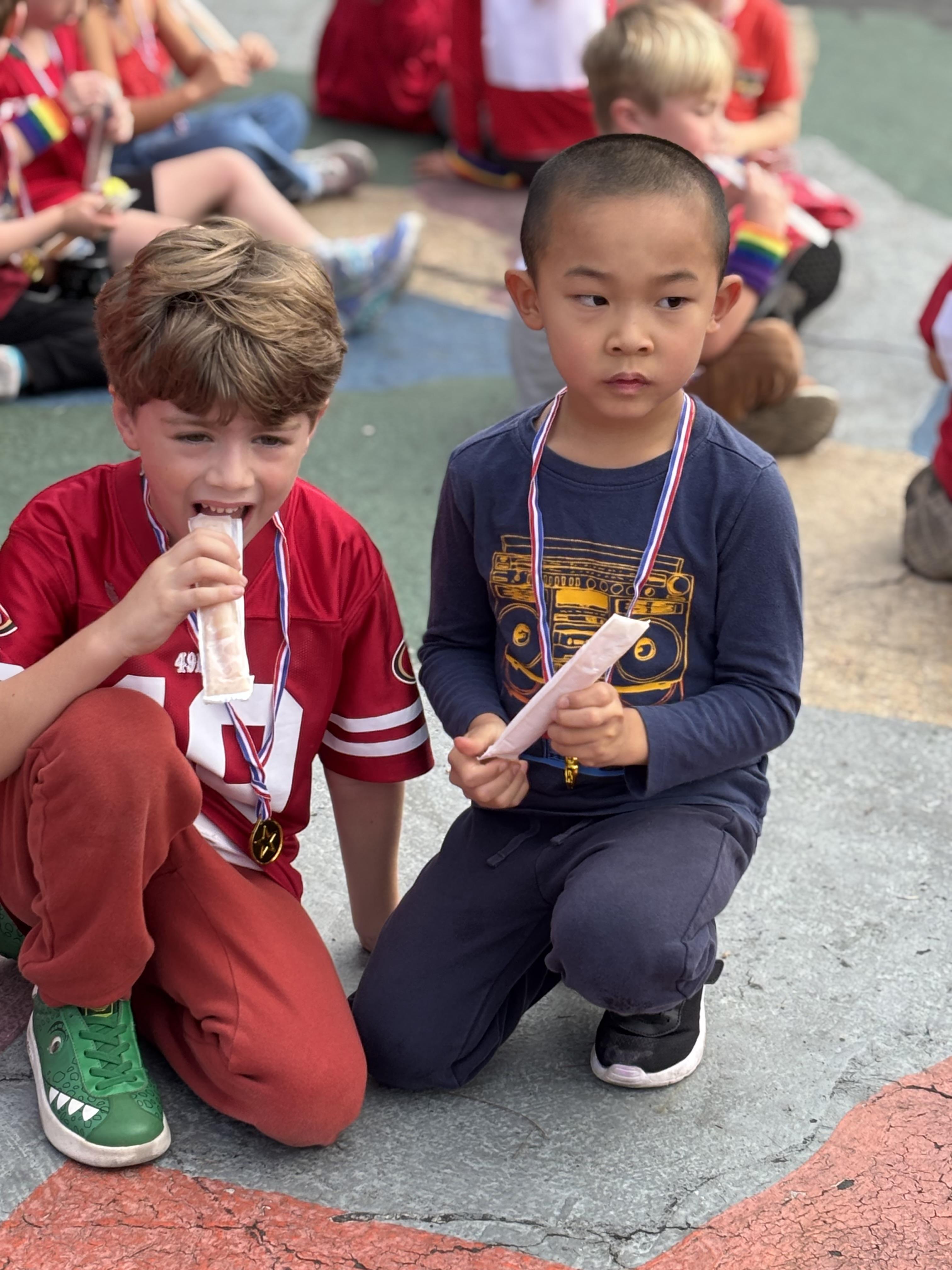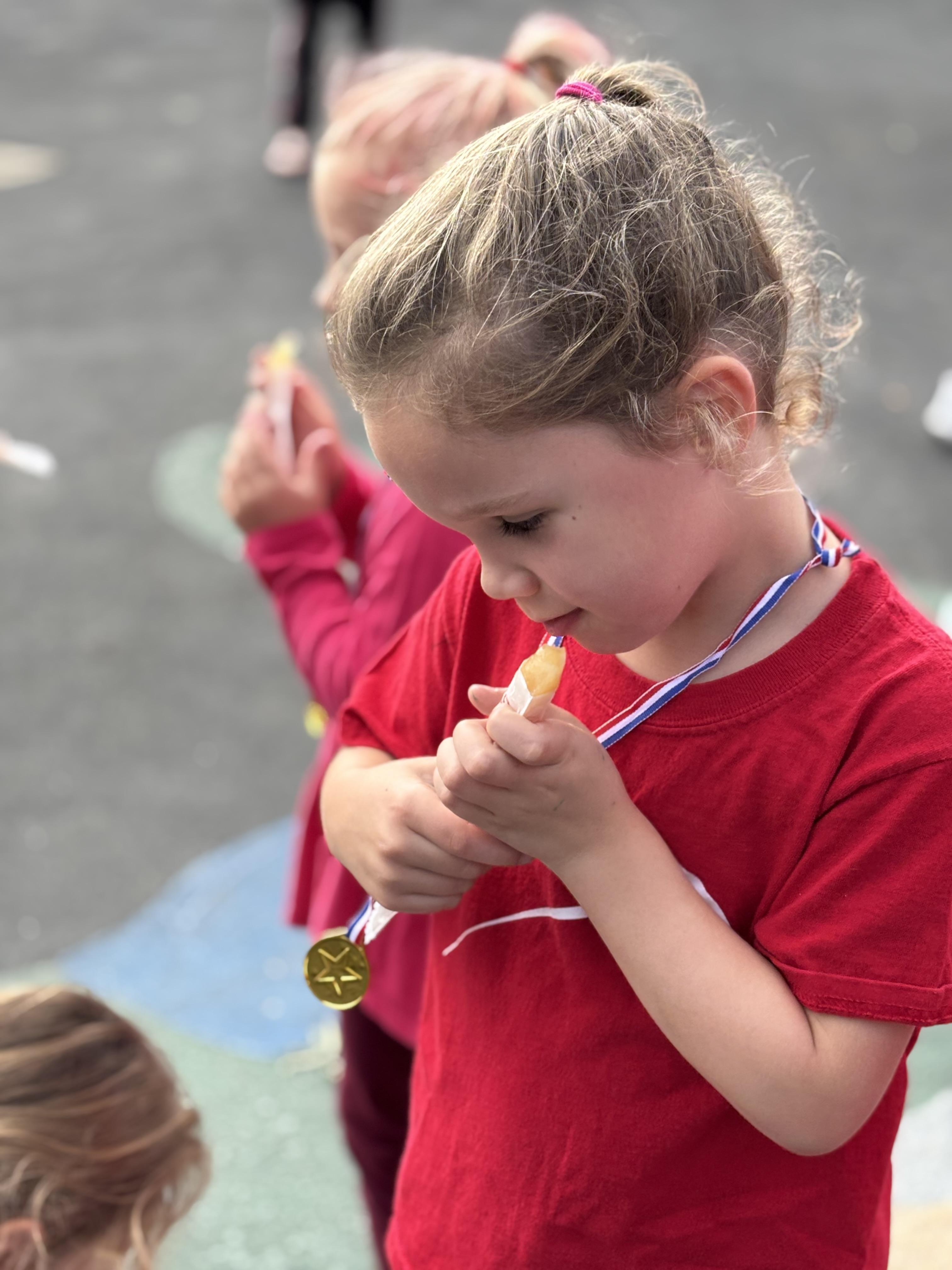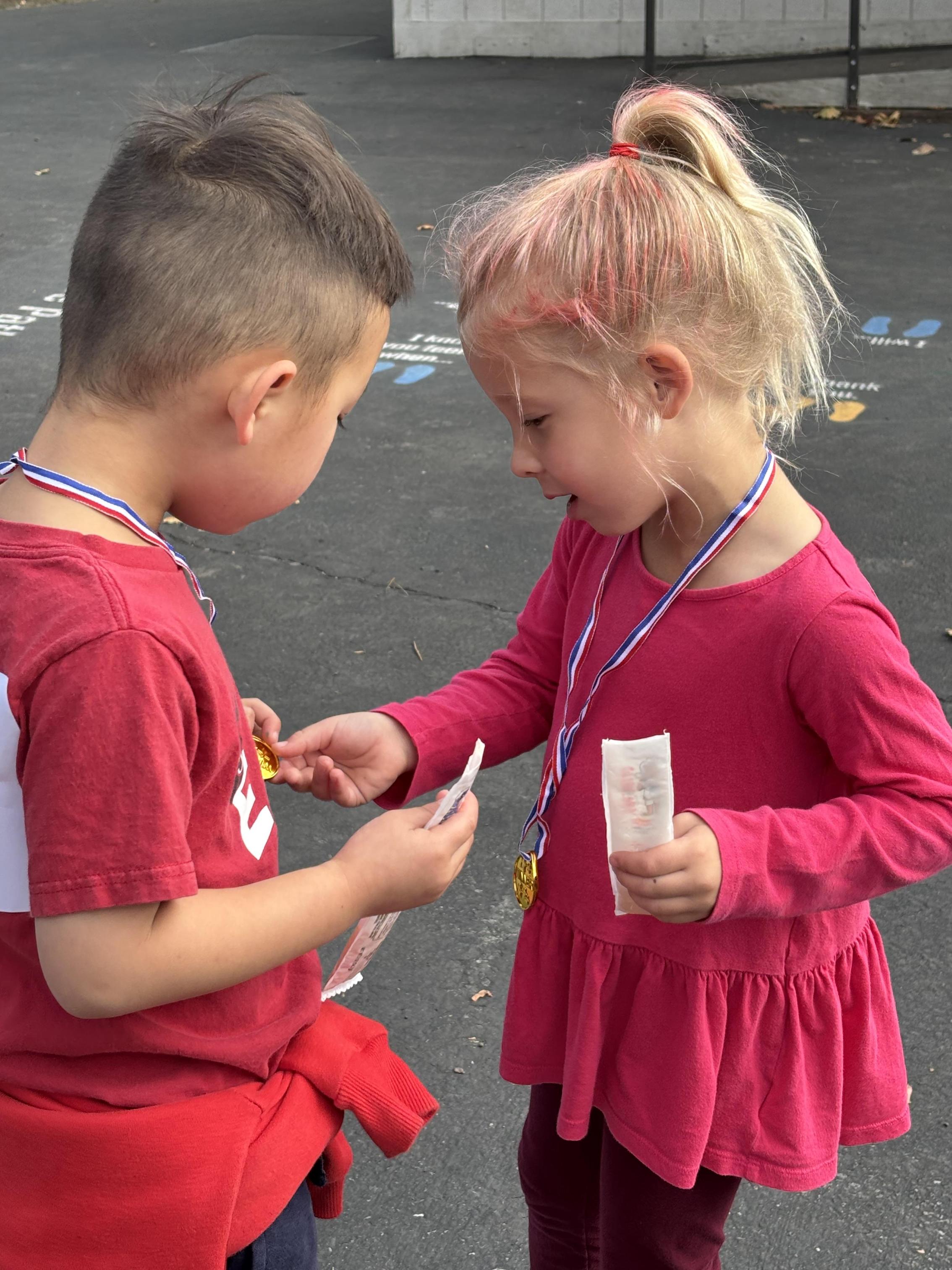 A big “thanks” to all the families that came out and cheered for us at The Rainbow Run! It was such a fun time and the children enjoyed a Kool Pop and a gold medal for their efforts!