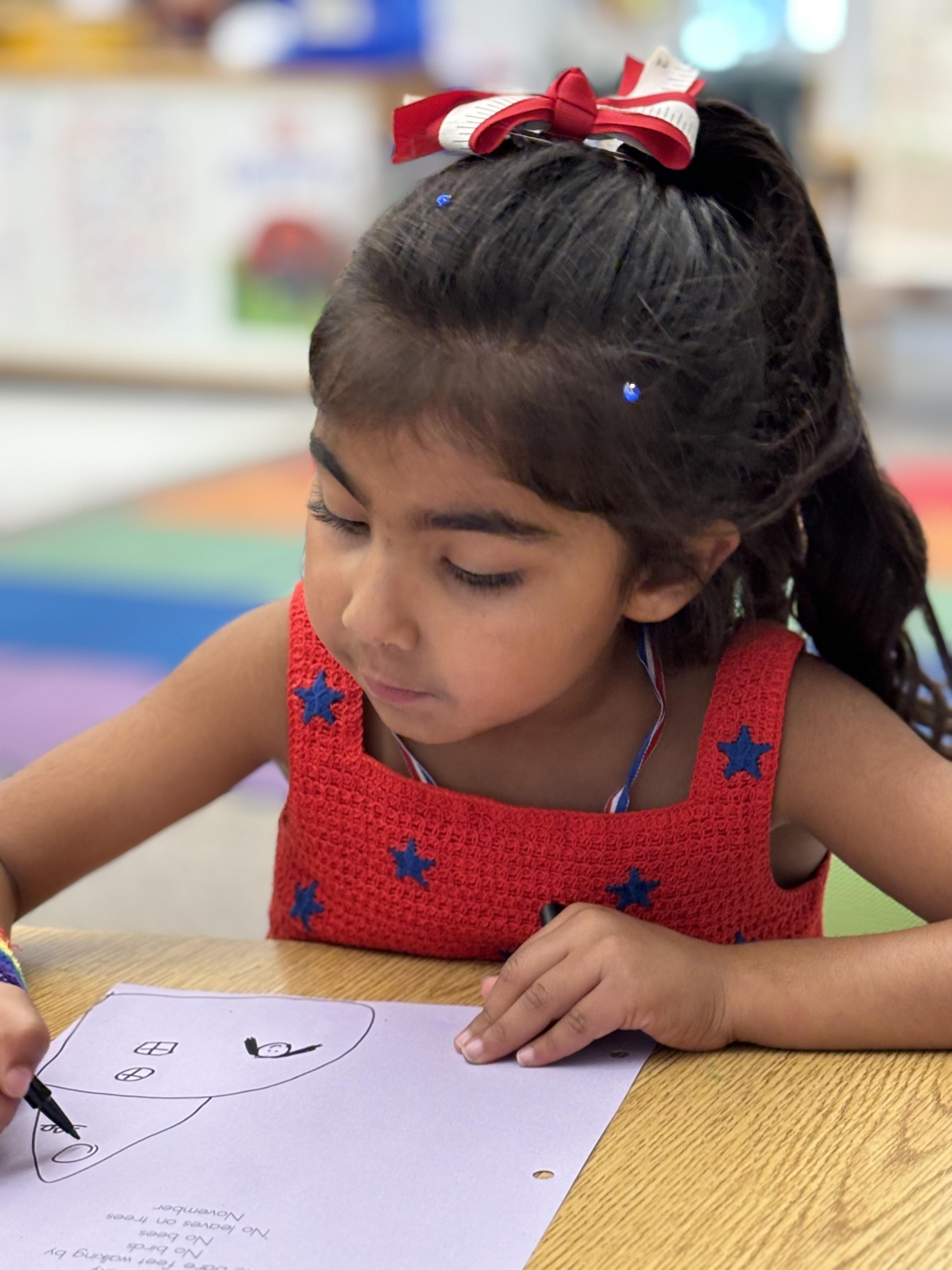 We also began using our handwriting program, Handwriting Without Tears. Handwriting Without Tears provides developmentally appropriate instruction for handwriting and number writing. The children know that you “always start a letter at the top!” Some of the language this program uses includes: big line down, big curve and little curve.